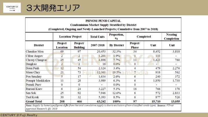 以下の資料ははプノンペン・キャピタルマーケットはプノンペンの中でどのエリアが1番コンドミニアムの開発が行われているのかというのをセンチュリー21グループで調査を行ったものです。投資する時のデータとして是非ご活用ください。