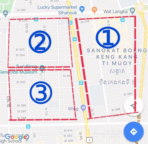 BKK3エリアをだいたい歩いて回ってみましたが、BKK1エリア(右側)とは雰囲気が違い、少しローカルで下町の落ち着いた雰囲気のような気がしました。思っているよりも騒がしくなくて、割と静かで暮らすには良さそうです。