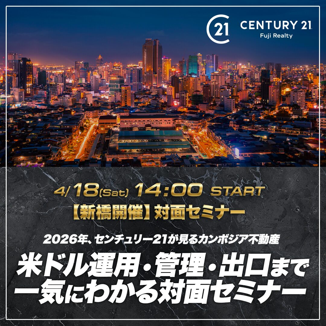 | セミナー名 | 【新橋開催】 2026年、センチュリー21が見るカンボジア不動産。米ドル運用・管理・出口まで一気にわかる対面セミナー |